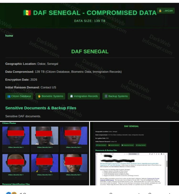 Des hackers disent avoir exfiltré 139 To de données sensibles (citoyens, biométrie, immigration) et montrent des preuves partielles pour faire pression et obtenir une rançon.