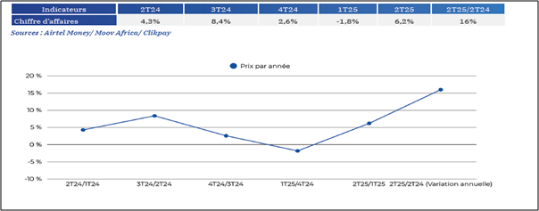 Au niveau national, les transferts entre particuliers ont également augmenté de 11 %. Globalement, les opérations de base, comme les dépôts et les retraits, enregistrent des hausses respectives de 9 % et 8 %, tandis que les paiements directs pour les achats (boutiques, services) reculent de 7 % sur le trimestre, mais restent en progression sur un an.